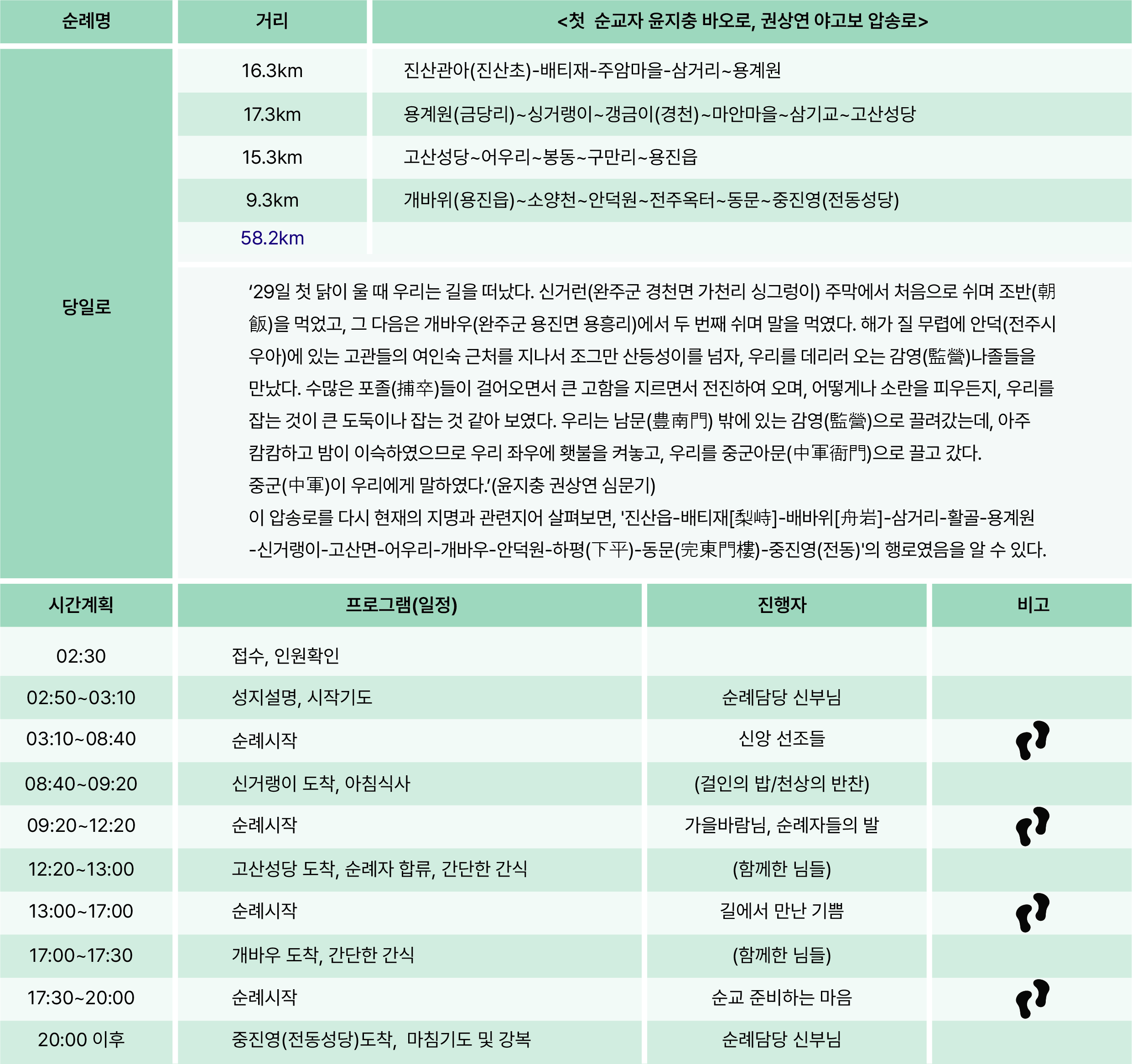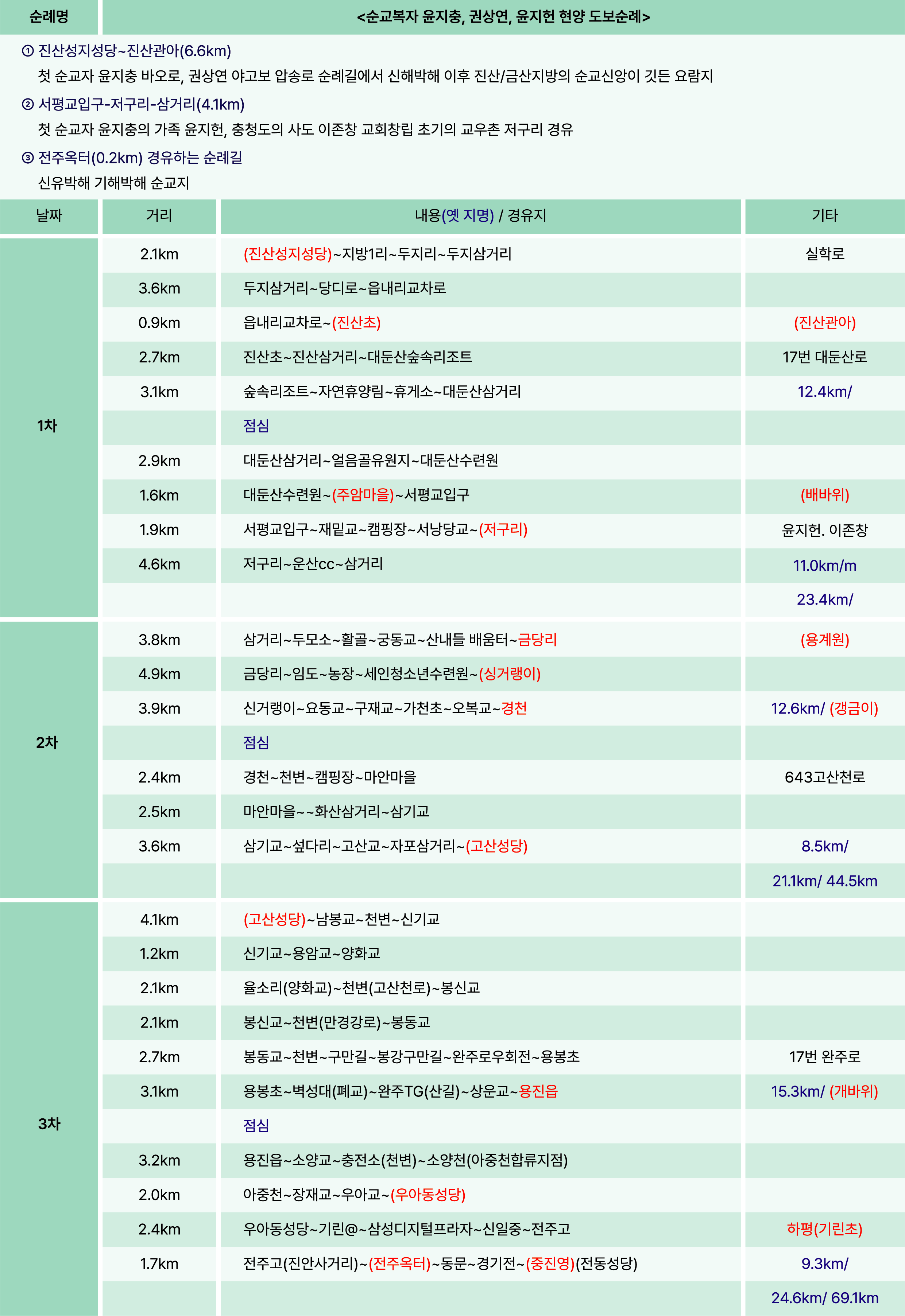 ② 순례길유래비 -> 진산성지 (4km 정도)